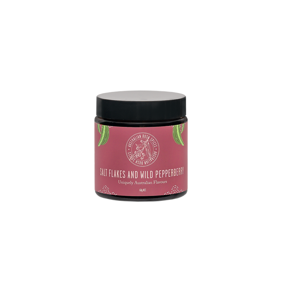 Our Australian Pink Salt Flakes, naturally occurring and high in calcium and magnesium, are blended with the delightful flavours of Australian Pepperberry. A tasty and easy way to spice up your dishes using uniquely Australian bush flavours.