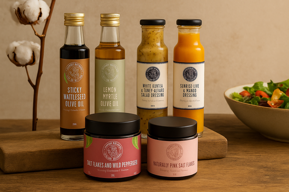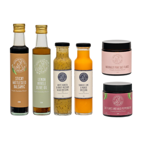 Experience the best of native Australian flavours with the Outback Bush Mega Pack. Featuring gourmet dressings, infused oils, balsamic, and bush-inspired salts, this collection brings unique taste to every meal. Perfect for food lovers and gift hampers.